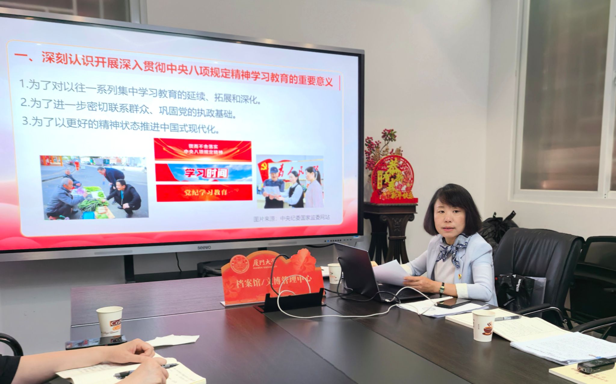 4月29日上午,档案馆/文博管理中心党支部开展深入贯彻中央八项规定精神学习教育第一次集中学习交流暨专题党课。