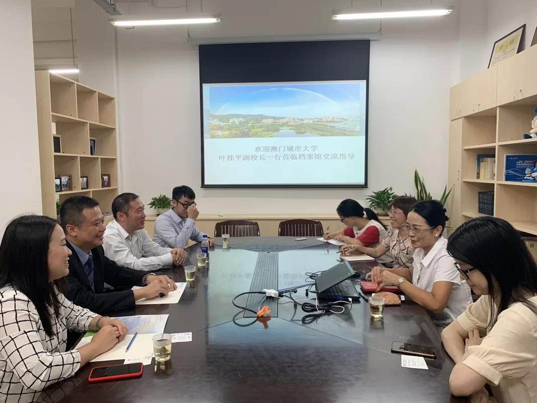 8月18日下午,澳门城市大学(以下简称澳城大)副校长叶桂平、法学院课程主任李洪江、澳门社会经济发展研究中心副主任王心、校办秘书陈健卓一行莅临我校档案馆交流指导。我校档案馆、台港澳事务办公室相关人员盛情接待了叶桂平副校长一行并举行了座谈会。这是我校档案馆首次与境外高校就档案工作开展的交流活动。