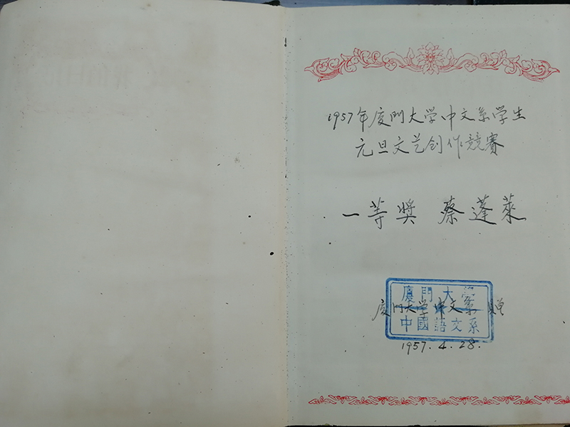 蔡蓬莱先生于1956至1960年在我校中文系汉语言文学就读,在校学习期间,保持着记录个人学习生活情况的良好习惯,并留存下记录大学生活的日记本6本,同时还收藏有厦大学习生活照片多张。为表达一家两代厦大人对母校的感情,以及更好地保存史料,最大发挥史料价值,蔡群威校友拟将这些史料悉数捐赠给母校档案馆。